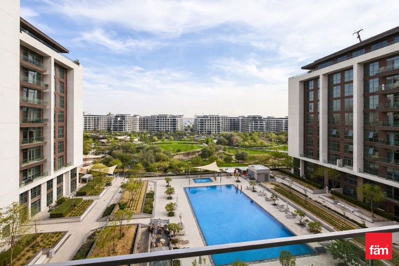 Oday | fäm Properties is proud to present this beautiful 3-bedroom + maid’s apartment in Acacia, Dubai Hills Estate, offering stunning park and pool views in the highly sought-after Park Heights community.