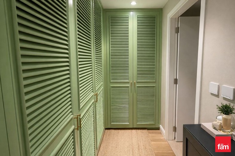 The apartment features a bright open-plan living and dining area with floor-to-ceiling windows, allowing plenty of natural light and beautiful green views. All bedrooms are spacious with built-in wardrobes and en-suite bathrooms, while the maid’s room adds extra practicality.