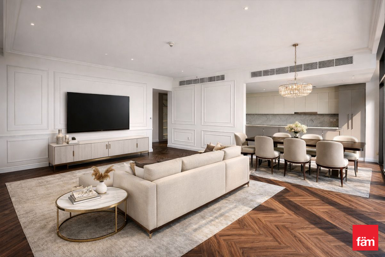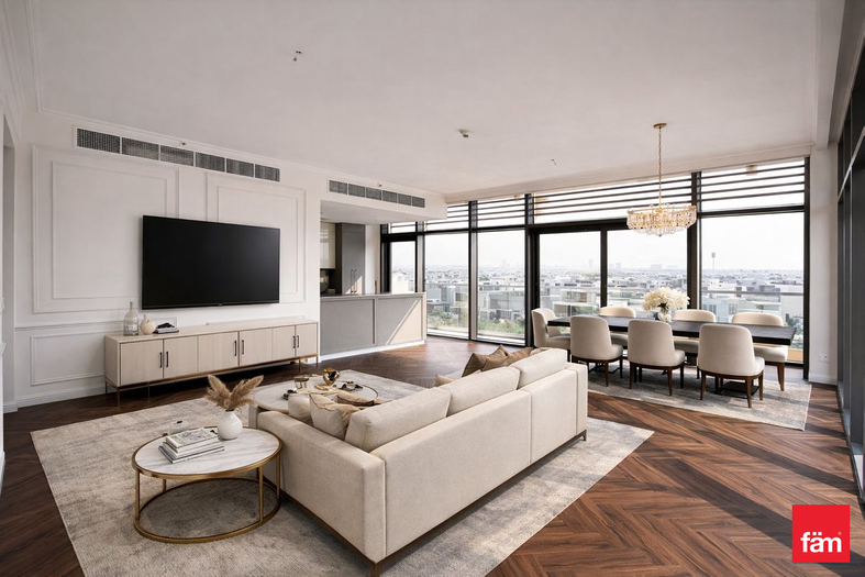 Designed for comfort and style, the apartment features a bright and airy layout, five elegant bathrooms, and generously sized bedrooms. The maid’s room adds extra convenience for families, while the open-plan living and dining areas provide the perfect setting for both relaxation and entertaining.